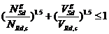 NoRk,c=7.0×(fcu,k)0.5×(hef)1.5=27.4343KN; Aoc,N=(scr,N)2=57600.00mm2; Ac,N=144000.00mm2; Mss,N=0.90; Msre,N=0.90; Msec,N=1.00; Msucr,N=1.00; NRk,c=55.554KN; NRd,c=NRk,c/γRc,N =25.839KN; NRd,c>=Ngsd 混凝土锥体受拉破坏承载力满足要求! C.混凝土劈裂破坏承载力 NRd,sp----混凝土劈裂破坏受拉承载力设计值 NRk,sp----混凝土劈裂破坏受拉承载力标准值 NRk,c----进行混凝土劈裂破坏时的混凝土锥体破坏时的受拉承载力标准值 Msh,sp----构件厚度h对劈裂承载力的影响系数 Msh,sp=(h/(2×hef))2/3<=1.5; =1.160; NRk,C=47.221KN; NRk,sp=Msh,sp×NRk,c =54.795KN; NRd,sp=NRk,sp/γRsp =25.486KN; NRd,sp>=Ngsd 混凝土劈裂破坏承载力满足要求! D.锚栓钢材受剪破坏承载力 本设计考虑纯剪无杠杆臂状态,锚栓受剪承载力标准值VRk,s按下式计算: 螺杆c<10*hef,所以只有部分锚栓承受剪力,每个锚栓受剪力为 则 Vhsd=1.296KN; VRk,s=0.5×As×fstk =12.693KN; VRd,s=VRk,s/γRs,V =6.347KN; 则 Vhsd=1.296KN; VRd,s>=Vhsd